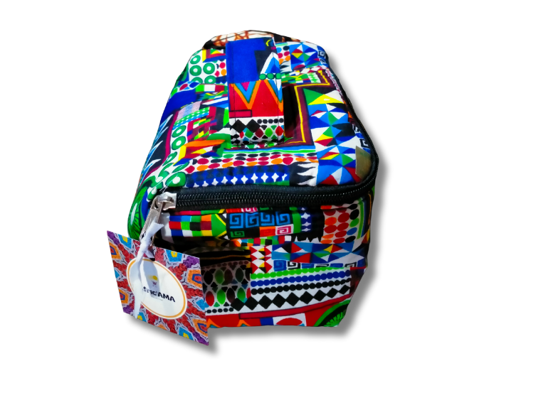 Beauty case a mattoncino in tessuto wax, foderato con cernieraMATERIALE: kitenge waxOFFERTA MINIMA: € 16.00